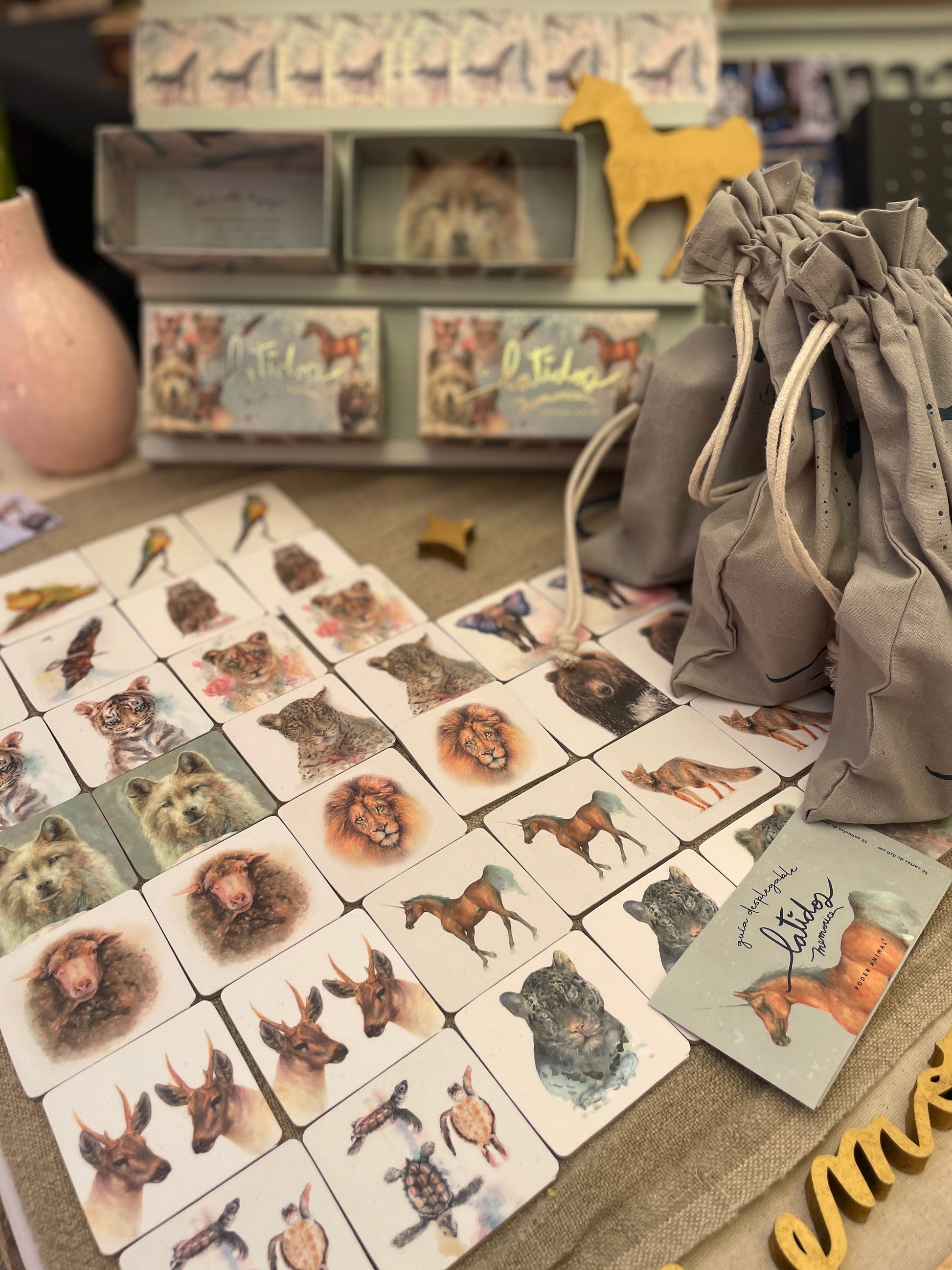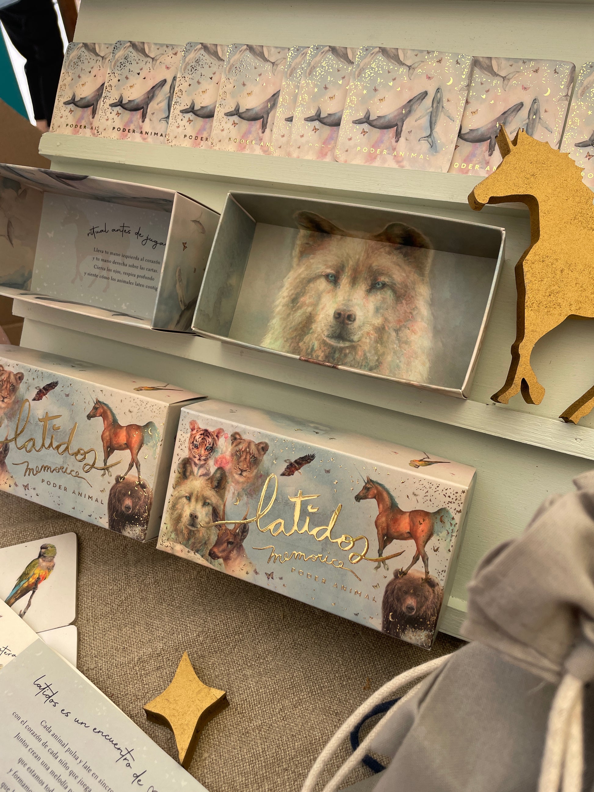 - 36 cartas ilustradas - 18 animales de poder: Cada ilustración original está hecha a mano con acuarela y lápiz sobre papel 100% algodón.